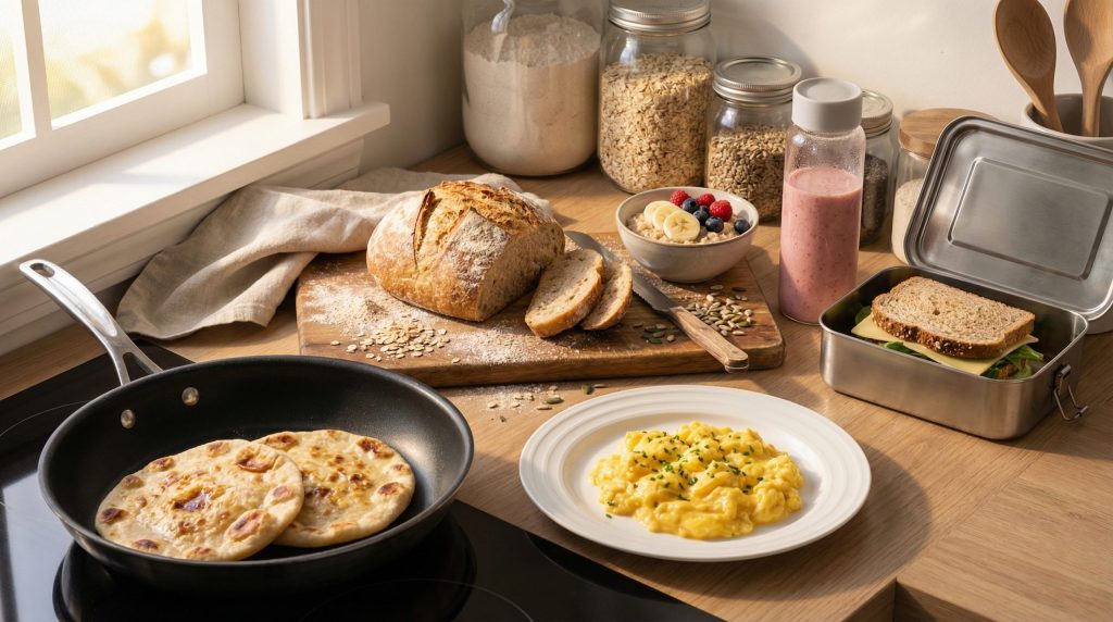 Escolher e preparar um café da manhã prático depende de três pilares: simplicidade, versatilidade e planejamento. Com receitas rápidas como pães de frigideira, panquecas de banana e mingaus de aveia, é possível montar refeições nutritivas em poucos minutos, além de reaproveitar sobras em omeletes ou sanduíches.