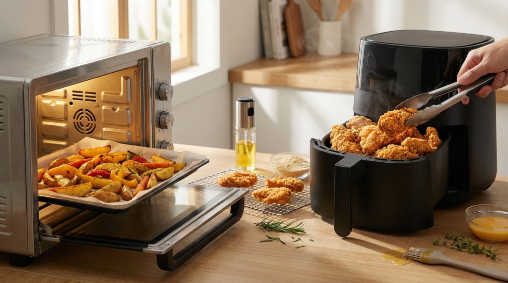 Escolha entre forno, airfryer e economia doméstica
