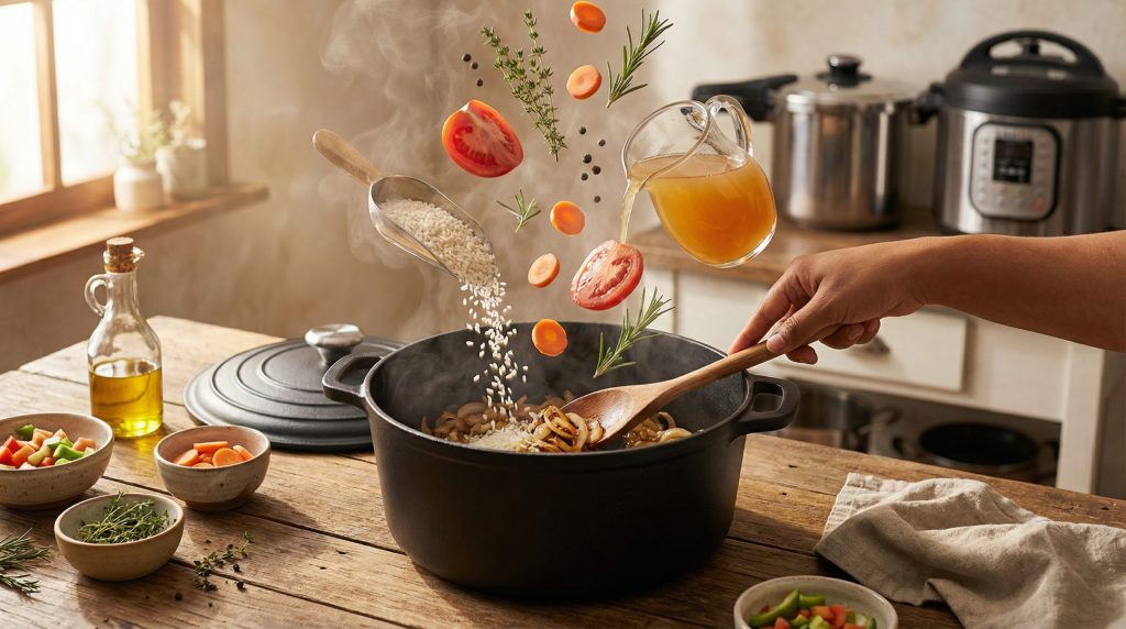 A Técnica do “Uma Panela Só”: Massas e Risotos