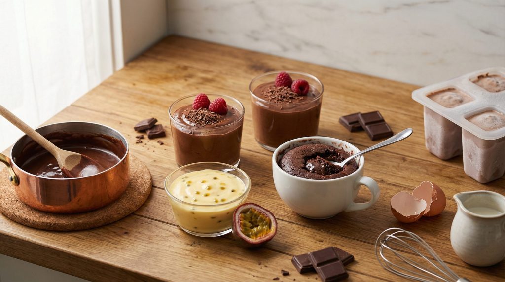 As sobremesas express podem virar soluções criativas no dia a dia: mousses, cremes de travessa, brigadeiros rápidos e bolos de caneca atendem diferentes ocasiões sem exigir técnica avançada. Priorize ingredientes com boa estabilidade (creme de leite, leite condensado, ovos) e aprenda ajustes simples de textura — menos tempo de geladeira para versões leves e mais tempo para travessas firmes.