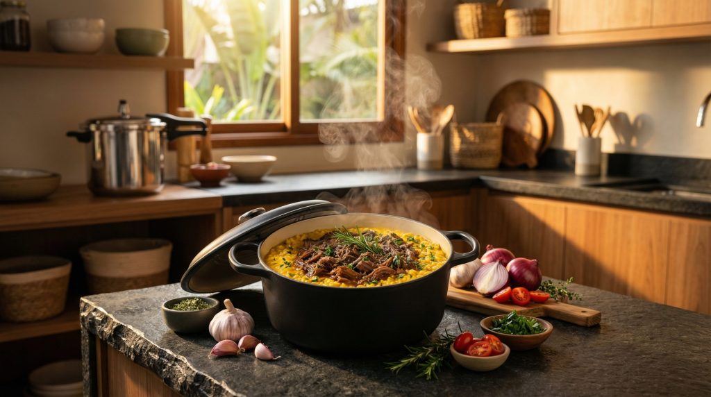 Cozinhar é um ato de amor e criatividade, mas a pilha de louça que resta ao final do preparo muitas vezes desencoraja até os cozinheiros mais entusiasmados. A boa notícia é que a culinária prática evoluiu para oferecer soluções que unem sabor intenso, texturas perfeitas e, crucialmente, menos bagunça. A técnica de “uma panela só” (ou one-pot meals), aliada ao uso inteligente da panela de pressão e caçarolas pesadas, transformou a rotina das cozinhas modernas.